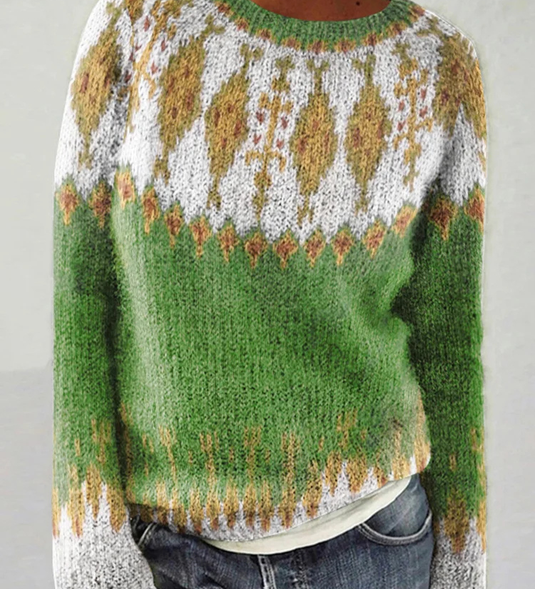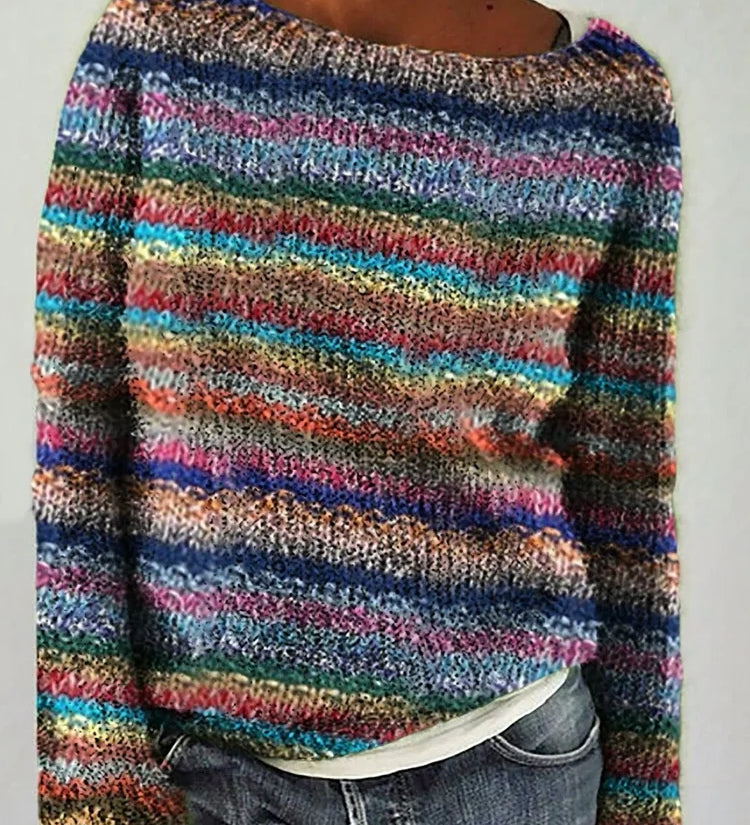 Clara - Elegantiškas trijų spalvų patchwork megztinis