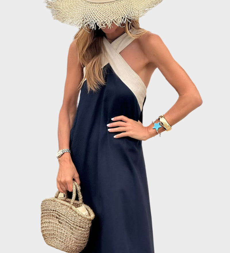 Elegantiška Suknelė su Atvira Nugarėlė ir Moderniu Kryžminiu Kaklu