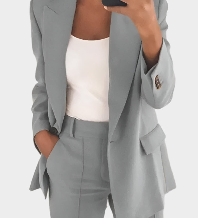 Moteriškas, modernus, vienos spalvos, dvikomplektis kostiumas