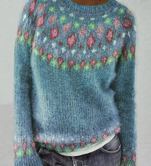 Švelnus Megztinis Su Aukštu Kaklu ir Raštu