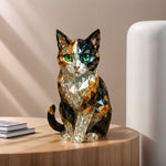 Ez az elegáns macska szobor a tökéletes kiegészítő mindenkinek, aki szeretné feldobni otthona vagy irodája megjelenését. Gyanta anyagból készült, és olyan megjelenése van, mint egy drágakő, fekete és arany színkombinációval, ami luxus és művészi hatást kölcsönöz neki. Belső és külső használatra egyaránt alkalmas, és nem igényel elektromosságot, így praktikus és sokoldalú kiegészítője lehet bármely polcnak vagy asztalnak.