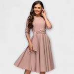 Ana - Elegantiška Midi Suknelė su Juosmens Diržu