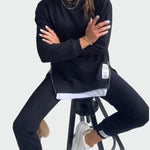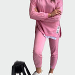 Dviejų spalvų komplektas, derinantis komfortą ir eleganciją su laisvu pritaikymu. Viršutinė dalis ir kelnės sukuria visapusišką įvaizdį, tinkantį bet kokiai progai. Minkšta tekstūra ir modernus dizainas daro jį idealiu kasdienėms, taip pat ir ypatingoms progoms.