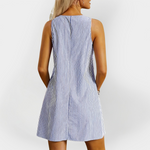 Ši dryžuota suknelė yra puikus pasirinkimas šiltoms dienoms, siūlanti komfortą ir eleganciją pačiu paprasčiausiu būdu.