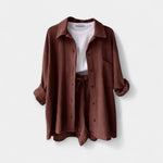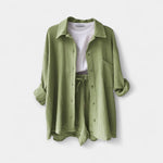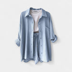 Lengvas ir elegantiškas komplektas karščiausioms metų dienoms. Idealiai tinka prie baseino, pasivaikščiojimams ar vasaros pabėgimams su stiliumi ir patogumu.