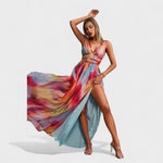 Karina - Elegantiška ir Vėsiai Suknelė sukuria nepamirštamą įėjimą su savo sklandžia siluetu ir ryškiu akvarelės dizainu. Puikiai tinka prie jūros švenčių, tropinėms atostogoms ar bet kuriam momentui, kuris reikalauja išskirtinės elegancijos.