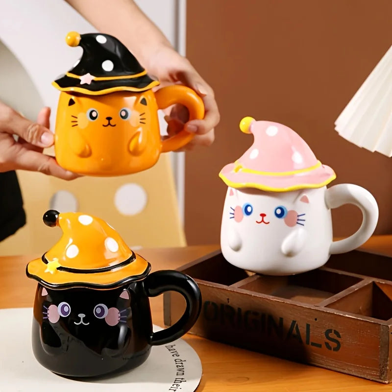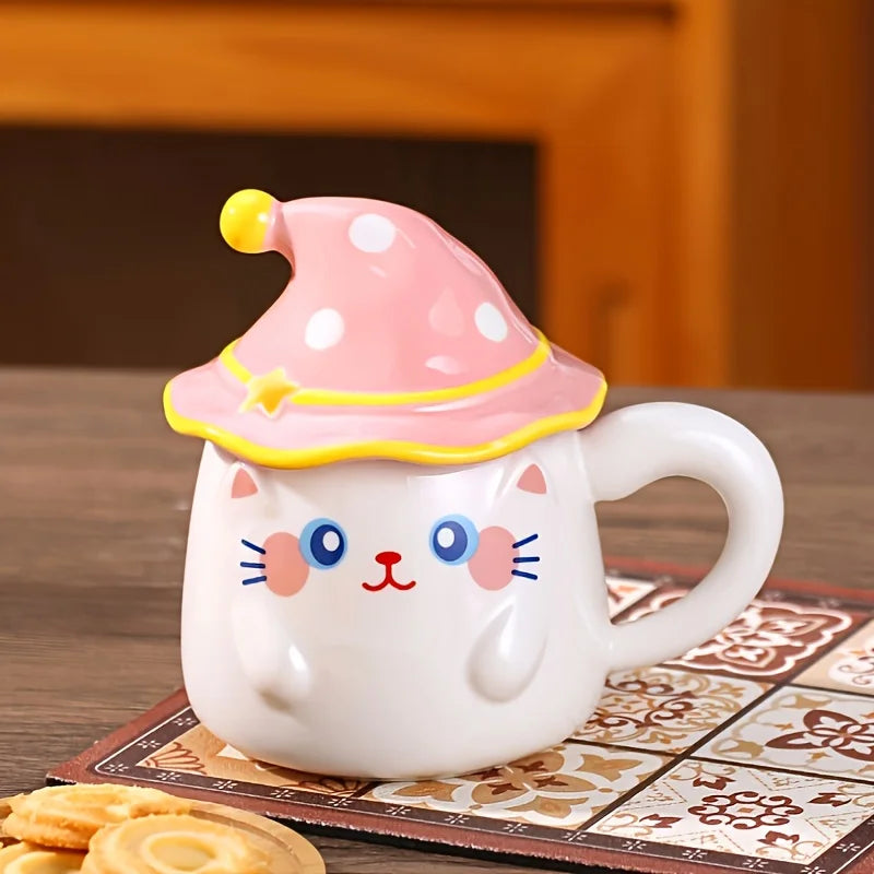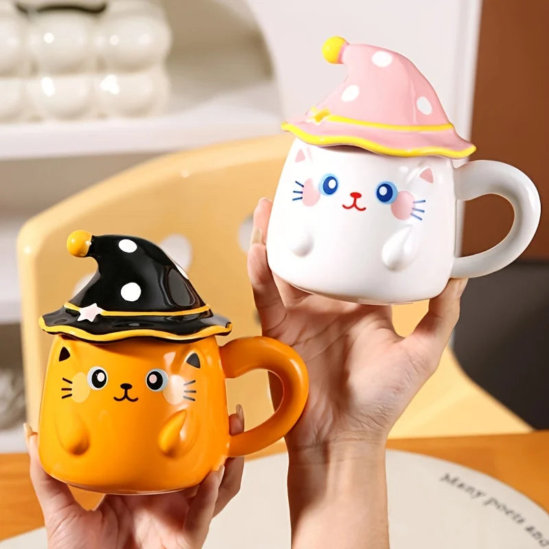 Adj egy kis varázslatot a kedvenc italodhoz ezzel a bájos macska varázsló bögrével. Vidám és egyedi dizájnjával a bögre lenyűgöz a varázsló kalapjával, amely egyben praktikus fedélként is szolgál, segítve, hogy az ital hosszabb ideig meleg maradjon, és megvédje a portól.