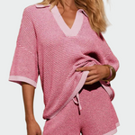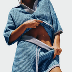 Bežinis komfortas yra komplektas, kuris derina laisvą stilių ir praktiškumą. Minkšta tekstūra ir elastingas pritaikymas suteikia komfortą, o modernus dizainas jį daro idealiu tiek atsipalaidavusiems, tiek elegantiškiems įvaizdžiams.