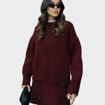Komplektas, kuris derina eleganciją ir komfortą su laisvu pritaikymu. Minkšta tekstūra suteikia malonų pojūtį, o minimalistinis dizainas jį daro idealiu kasdieninėms, taip pat ir ypatingoms progoms. Laiko patikrintas drabužis, kuris užbaigia kiekvieną įvaizdį su rafinuotumu.