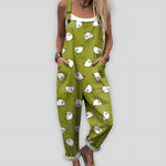 Jei myli madą su žaismingu akcentu, ši jumpsuit yra skirta tau! Su linksmu geltonai raudonų vištelių raštu ir laisvu siluetu, ji puikiai derina stilių ir komfortą.