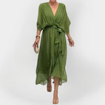 Ši lengva suknelė sujungia eleganciją ir laisvą stilių, siūlydama komfortą ir rafinuotumą kiekvienam jūsų įvaizdžiui.