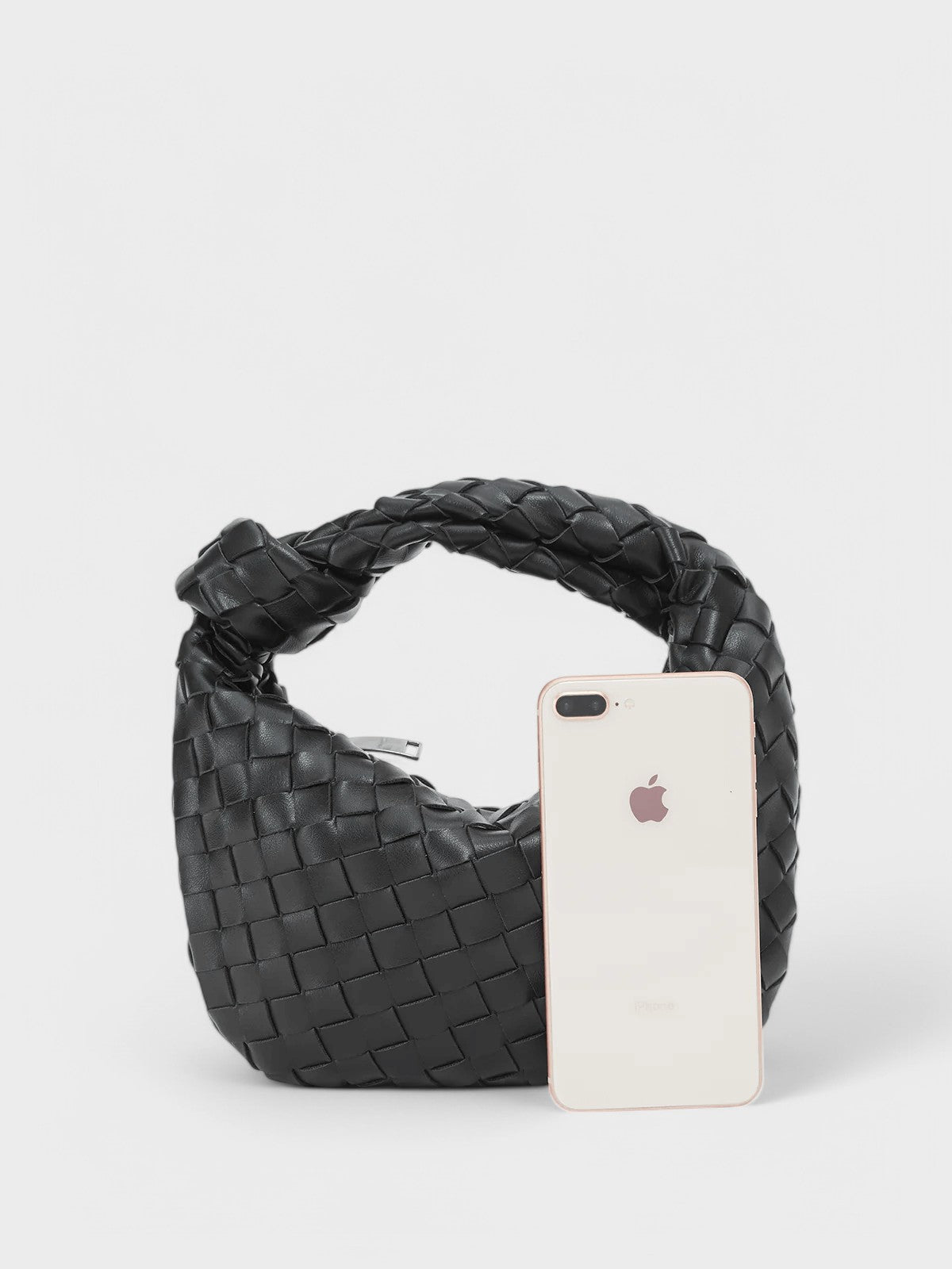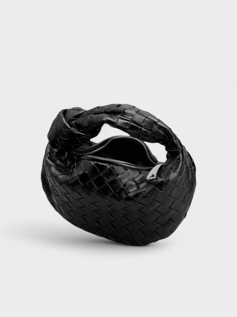 Mūsų juoda apvali rankinė su pintos tekstūros paviršiumi išsiskiria moderniu ir kartu klasikiniu dizainu. Kompaktiška, bet pakankamai erdvi, ji puikiai tinka tiek kasdieniams pasivaikščiojimams, tiek ypatingoms progoms. Stilinga viršutinė rankena suteikia patogumo ir elegancijos bet kuriame įvaizdyje.