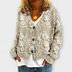 Pažinkite Stellą - Gėlėtą Megztinį, kur laikui nepavaldi gėlių kompozicija susitinka su kasdiene elegancija. Šis megztinis derina romantišką žavesį su patogumu ir yra idealus dėvėti ant jūsų mėgstamų bazinių drabužių.