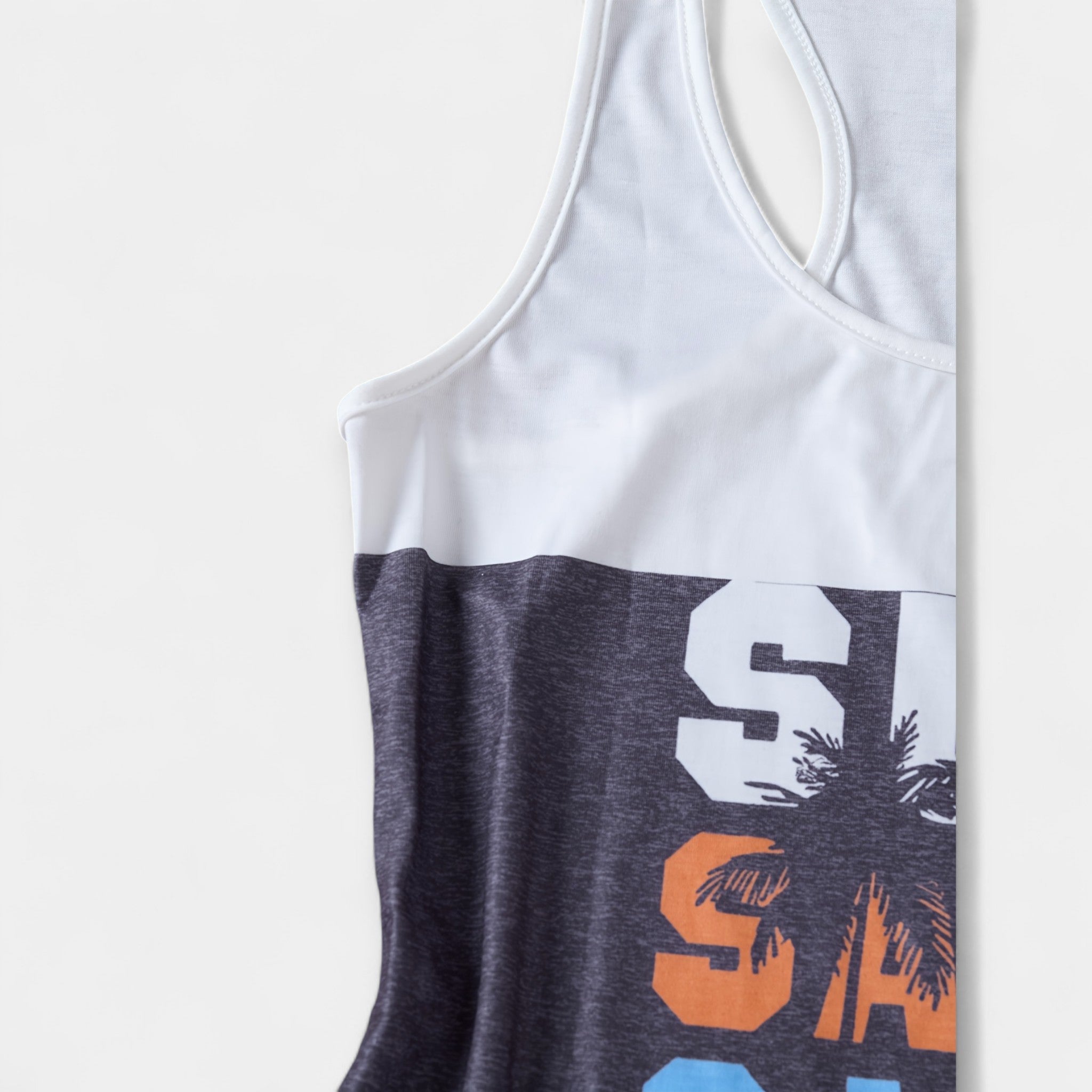 • Marškinėliai su vasaros palmių raštu stilingoms atostogoms