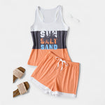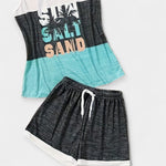 Šis lengvas ir žaismingas komplektas yra tai, ko reikia atsipalaidavimui ir stilingoms atostogoms. Marškinėliai su tropiniu raštu ir atitinkami trumpi šortai sukuria patogų ir gyvybingą įvaizdį kiekvienai vasaros išvaizdai.