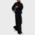 Elegantiškas komplektas, prisitaikantis prie bet kokio stiliaus ir suteikiantis tobulą paskutinę detalę kiekvienai išvaizdai. Jo universalus dizainas daro jį idealiu visoms progoms – nuo kasdieninių iki oficialesnių. Tai drabužis, derinantis praktiškumą ir nesenstančią eleganciją.