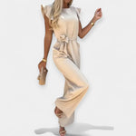 Šis visas kostiumas derina eleganciją ir komfortą, išsiskirdamas detalėmis, tokiomis kaip drugelio formos rankovės ir diržas, kuris pabrėžia liemenį. Idealiai tinka oficialiems ar kasdieniams renginiams, tai yra būtinas pasirinkimas.