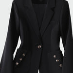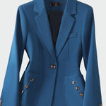 Įspūdingas švarkas su moteriška siluetu, išsiskiriantis elegantiškomis detalėmis. Vienas mygtukas priekyje suteikia minimalistišką eleganciją, o dekoratyviniai mygtukai kišenėse prideda modernią akcentą. Puikiai tinka tiek profesiniams susitikimams, tiek vakarinėms išvykoms su stiliumi.